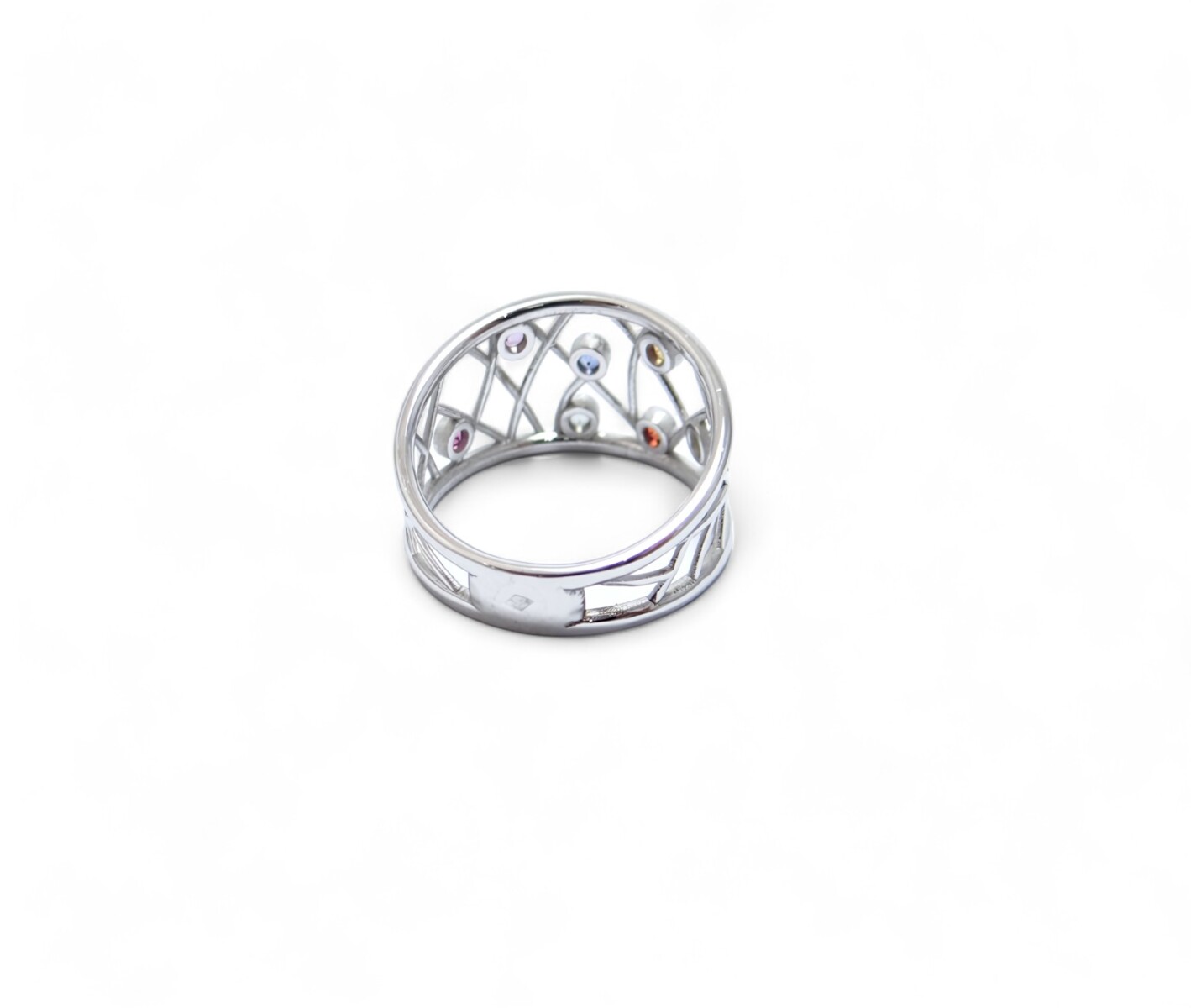 Éclat Éternel : La Bague en Or Blanc aux Saphirs Multicolores